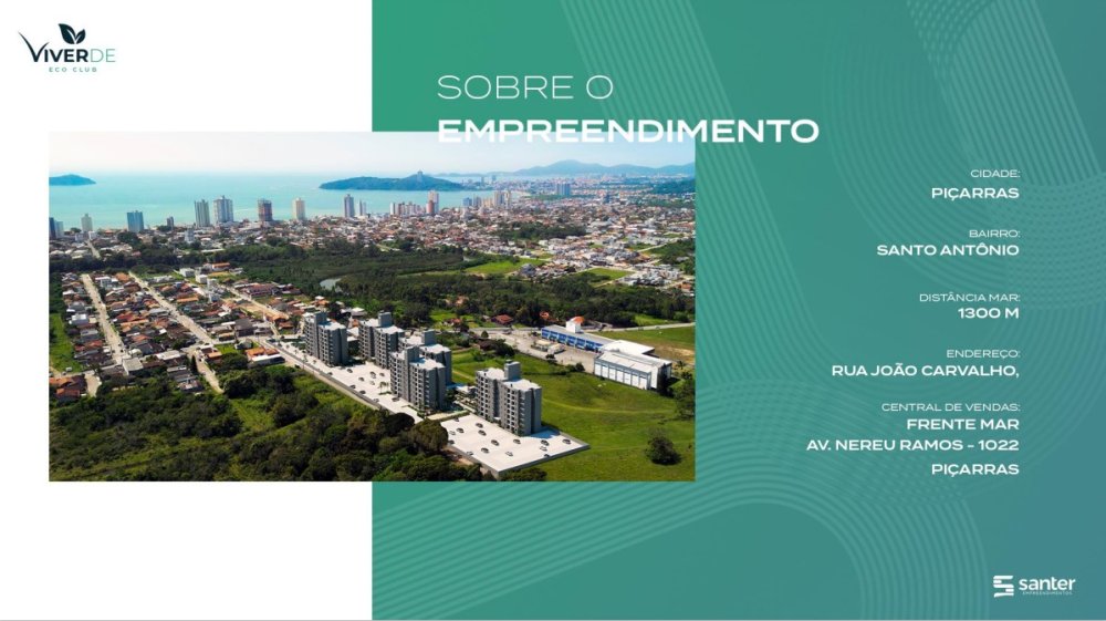 Pensado para ser um endereço de verão o ano inteiro, o viver Verde Eco Clube combina conforto e qualidade de vida em uma estrutura moderna. Situada entre os principais polos de crescimento do Estado, envolvido pela tranquilidade da mata Atlântica o empreendimento faz de Balneário Piçarras um dos mais belos cenários para conquistar o seu primeiro lar na praia uma oportunidade para valorizar o patrimônio com investimento altamente rentável.